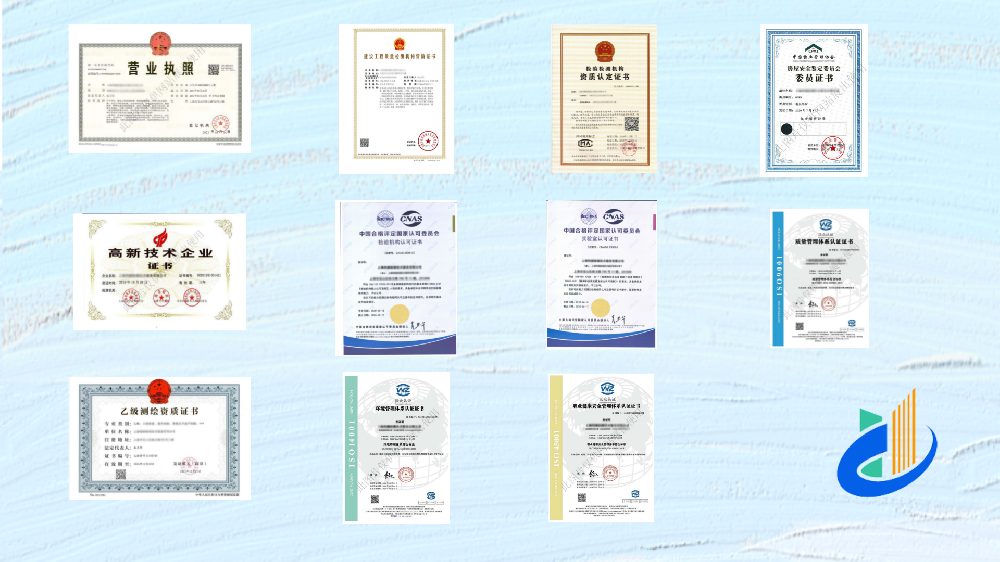 公司擁有上海市市場監督管理局頒發的檢驗檢測機構資質認定證書(CMA),上海市住房和城鄉建設管理委員會頒發的建設工程質量檢測機構資質證書,上海市建設工程檢測機構評估證書,上海市規劃和自然資源局頒發的測繪資質證書,并通過了中國合格評定國家認可委員會的實驗室認可和檢驗機構認可,獲得CNAS雙資質證書代表公司在檢測行業邁上了一個新的臺階。同時企業還是上海市市場監督管理局戶外招牌檢測資質名錄企業之一。